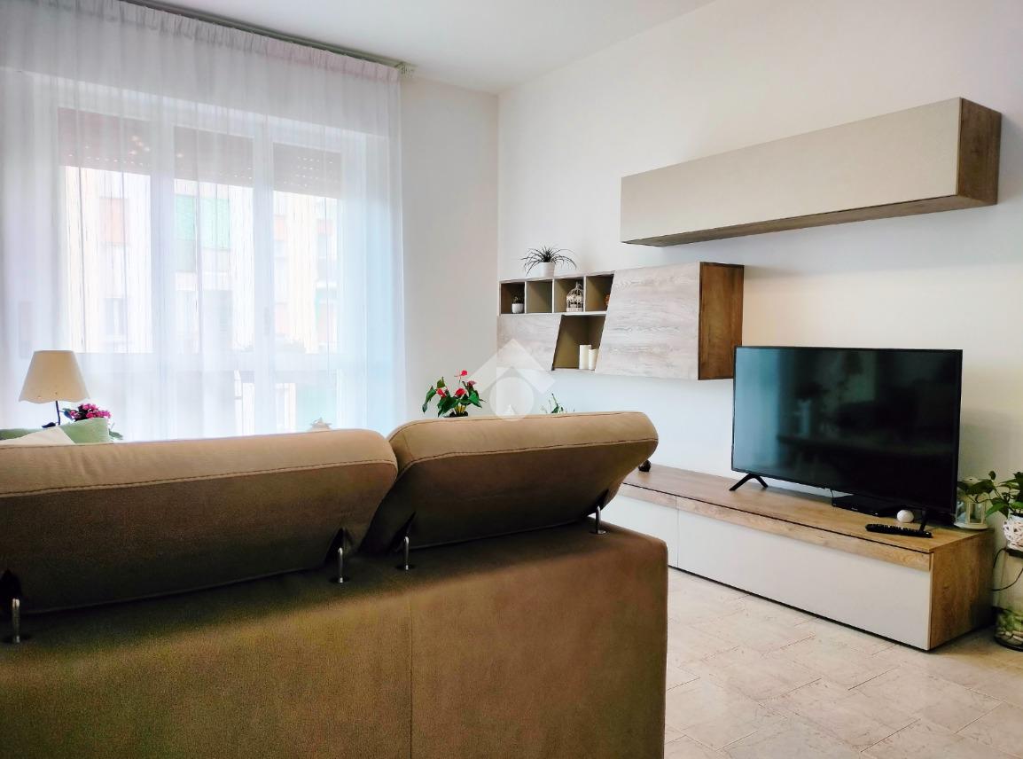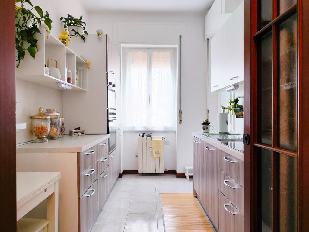 Soluzione composta da ingresso, ampio e luminoso soggiorno servito da balcone e comoda cucina abitabile con pratico locale lavanderia.