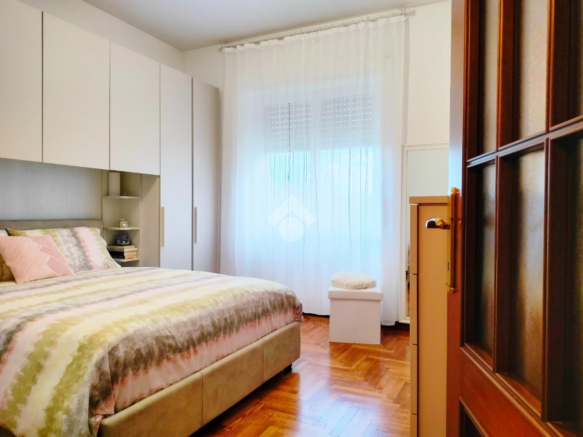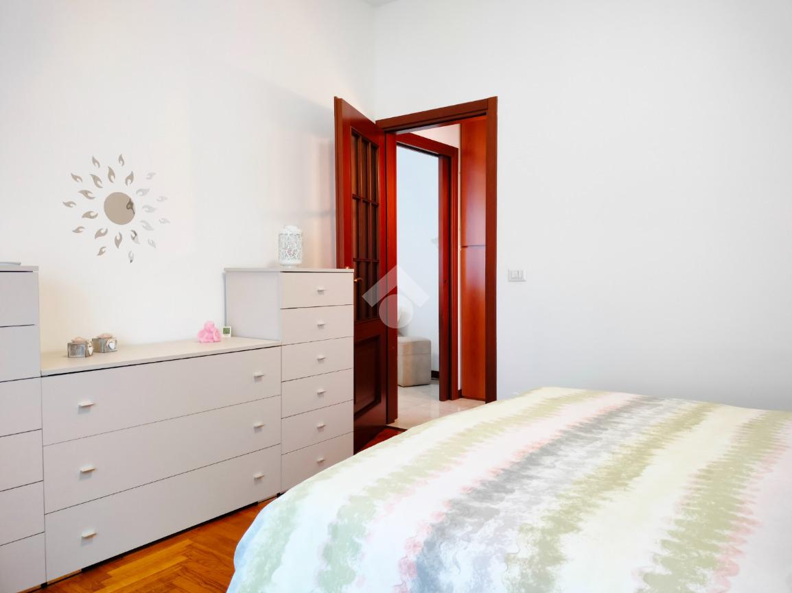 Dal disimpegno si accede alla zona notte costituita da spaziosa camera matrimoniale e bagno dotato di box doccia.