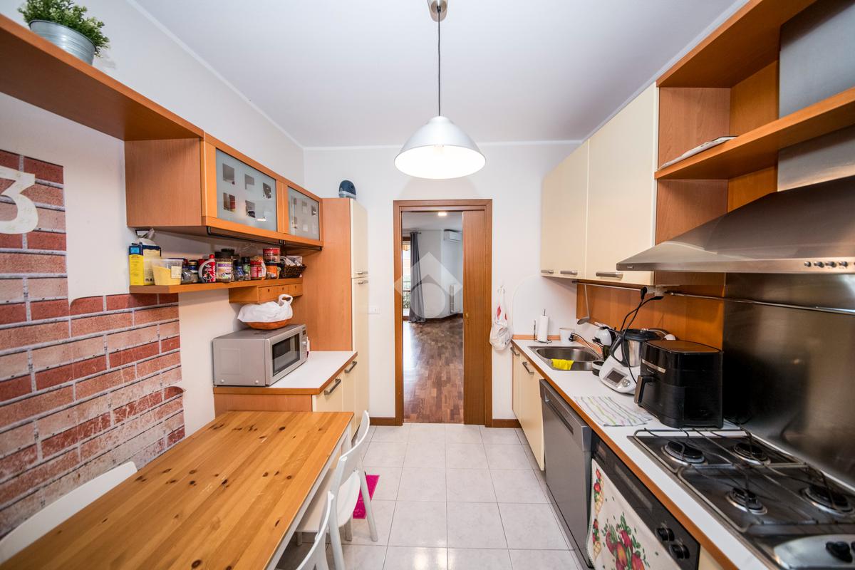 Soluzione composta da ingresso sull'ampio e luminoso soggiorno con cucina abitabile, 2 camere, doppi servizi, tre bei balconi e tripla esposizione.